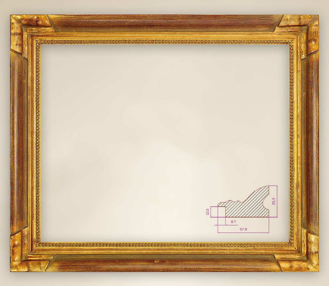 | Nicht nur warm und edel macht sich Adrienne als Gemälderahmen einen Namen. Zudem gehört er zur Reihe er Zierrahmen, die sorgfältig in Handarbeit für jeden einzelnen Wunsch gefertigt werden. Jedes Stück stellt dabei ein Unikat dar. Denn nach dem Zuschneiden des Echtholzes werden schließlich von den Designern die dazugehörigen Verzierungen nachträglich per Hand aufgetragen. So kann sich jeder Kunstliebhaber sicher sein, dass sein geliebter Kunstdruck in einem speziell für ihn gefertigten Rahmen an die Wand kommt. Bewundernder Blicke können sich Besitzer des Rahmen Adrienne sicher sein - wer hat schon ein Bronzerahmen mit Eck-Ornamenten in seinen vier Wänden, der genau nach seinen Wünschen gefertigt worden ist. Motive von Künstlern, die hierin gerahmt werden, kommen glänzend zur Geltung. Für besonderen Glanz sorgt bei diesem Exemplar in erster Linie die außergewöhnliche Farbe. Das Bronze-Stück glänzt fast golden, und die zahlreichen Nuancen, die hier eingearbeitet wurden, verstärken den Glanzeffekt ungemein. Im äußeren Bereich beginnt die Bronzefarbe eher in dunklerem Ton. Hier mischen sich goldig-gelbe Nuancen mit Brauntönen in waagerecht verlaufenden Strichlinien. Diese Mischung wird mit nahezu schwarzen Tupfen übersät. Die Gesamtansicht wiederum lässt diese interessante Mischung aus Farbkomponenten zu besagtem Bronzeton verschmelzen. Nach innen hin verstärkt sich wiederum der helle Goldglanz. Je näher sich das Echtholz dem Innenteil des Rahmens nähert, umso heller werden die Farbnuancen. Leiste um Leiste erhellt sich der Ton und gibt zum Abschluss einen hellen Glanz wider, der schließlich das Augenmerk auf das eigentliche Wunschobjekt lenkt - auf den gewählten Kunstdruck. Adrienne bietet aber noch weitere Elemente, die den Blick des Betrachters auf ihm ruhen lassen. Denn neben der farblichen Gestaltung haben die Designer an der Form des Rahmens ebenso gekonnt Hand angelegt. Angefangen bei der Reihenfolge der verschiedenen Zierleisten, die Adrienne ausmachen. Auf den Maßen von 35 mm in der Höhe und 57 mm in der Breite kommen diverse Leistenbereiche zum Einsatz. Fulminant beginnt dabei der Außenbereich, der gleich mit der Hauptborte beginnt. Diese schiebt sich dominant in den Raum hinein und flacht darauf abgerundet in den nächsten Bereich hinein. Drei verschiedene schmale Leisten bilden hier sogleich den Innenbereich in gekonnter Manier. Zusammen zeigen sie sich fast als eine Einheit. Auf die ersten zwei schmalen Borten folgt eine Leiste mit anschaulichem Dekor. Wie Kettenglieder aneinandergereiht, vollbringen zahlreiche kleine Kügelchen ein ästhetisches Zusammenspiel zum Bildinneren hin. Seine Beschreibung aber hat Adrienne aufgrund der besagten Eck-Ornamente, die etwas Besonderes auf der Hauptleiste darstellen. Diese werden in Handarbeit gefertigt, nachdem der Wunsch des Kunden nach der Größe feststeht. Dann gehen die Designer ans Werk und bilden diese Eck-Ornamente. Durch eine Schnitzerei sind die Rahmenwinkel optisch von der Hauptleiste getrennt. Diese zwei Eckleisten sind mit einem durchaus starken Gold versehen und dadurch setzen sie sich gekonnt von dem äußeren Bronzeton ab. |