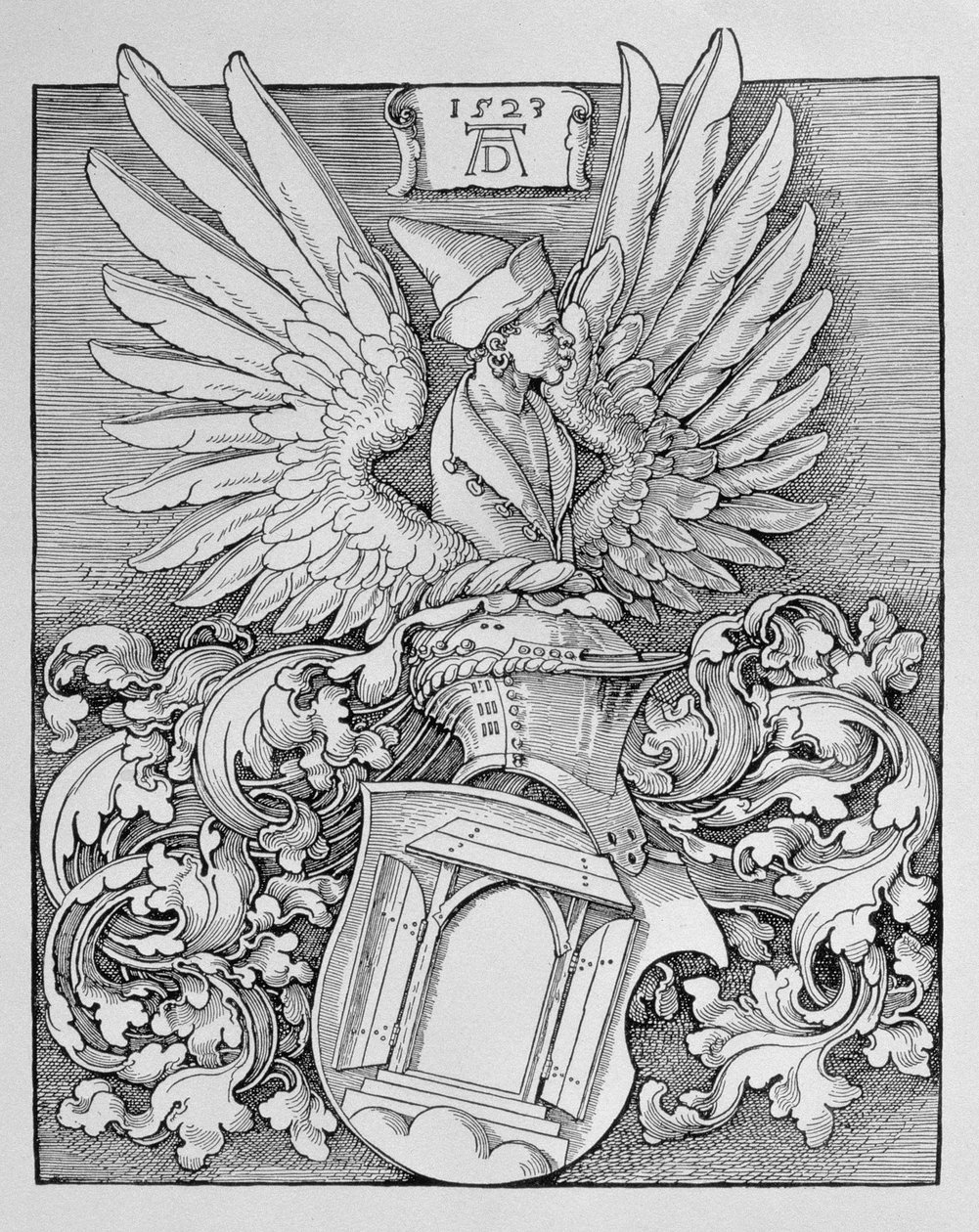 Wappen der Familie Dürer, mit dem Monogramm des Künstlers und Platz für eine Inschrift, 1523(Coat of Arms of the Durer Family, with the artist's monogram and space for an inscription, 1523 )Albrecht Dürer |