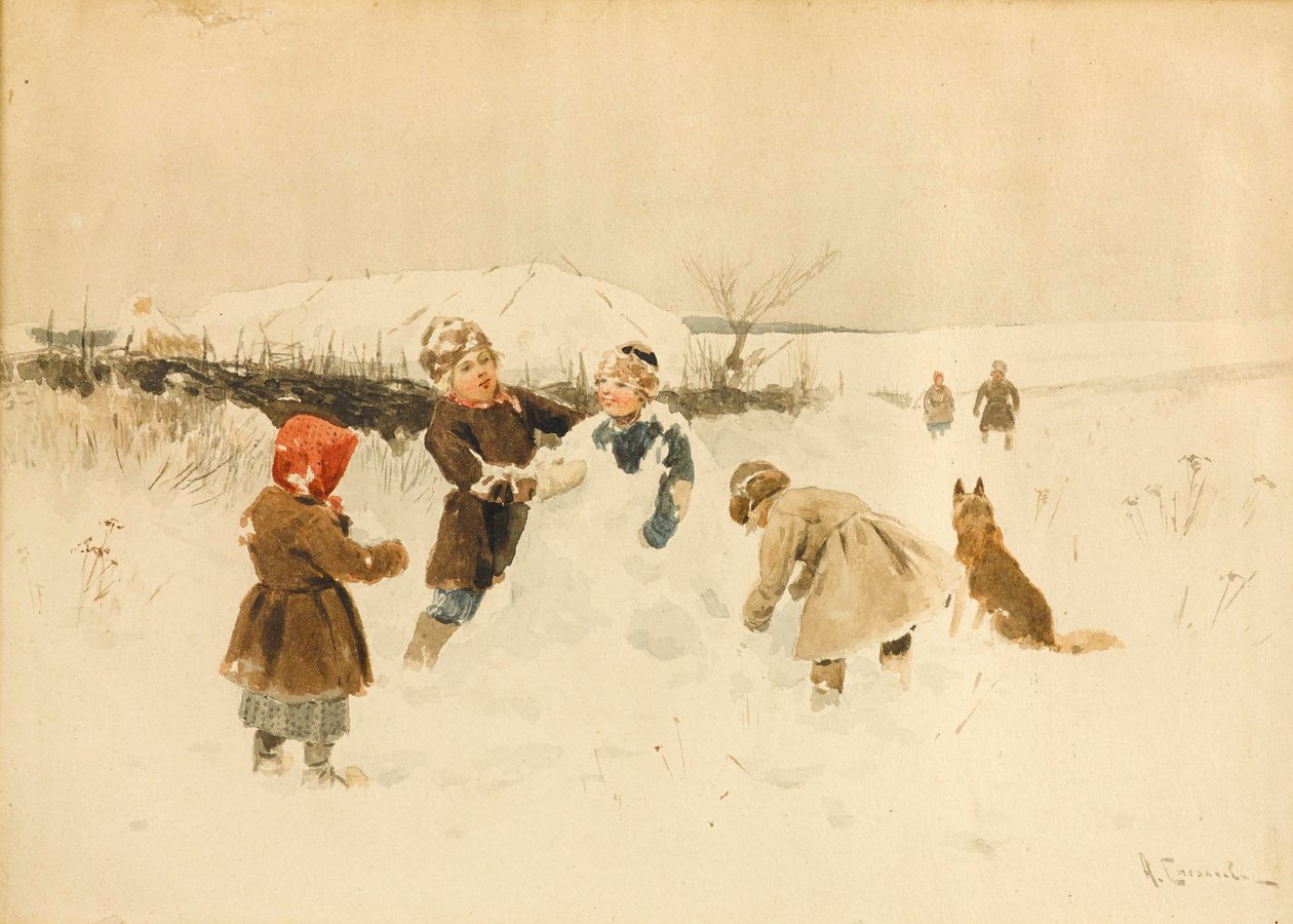 kindheit · kinder · schnee · unterhaltung · rußland · snowman · landseite · graphische künste · realismus · genre · country village · private collection · stepanov · watercolour on paper · winter landscape · watercolour on paper · stepanov · alexei stepanovich 1858-1923 · alexei stepanovich 1858-1923 · graphic arts · Fine Art Images/Heritage Images |