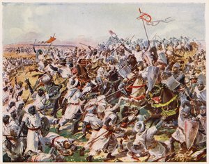 König Peter I. von Portugal bestraft den Bischof von Porto (Farblithografie)(King Peter I of Portugal punishing the Bishop of Porto (colour litho))Alfredo Roque Gameiro |