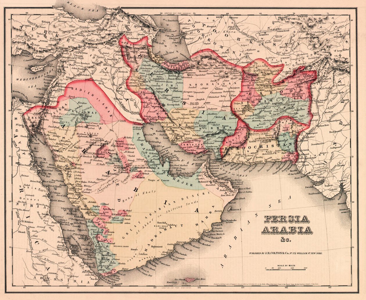 Der Nahe Osten Mitte des 19. Jahrhunderts, aus Coltons General Atlas, Ausgabe von 1857(The Middle East in the mid 19th century, from Coltons General Atlas, edition of 1857 (hand-coloured engraving))American School |