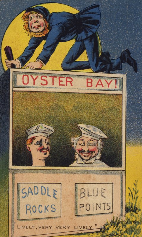 werbung · karte · ephemera · polizist · knüppel · kriechen · uniform · mond · suchen · köpfe · lustig · skizzieren · hüte · bilden · Oyster Bay · Private Collection / Bridgeman Images · / Look and Learn |