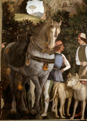 Zwei Pferdeknechte mit dem Pferd und den Hunden von Lodovico Gonzaga(Two grooms with the horse and hounds of Lodovico Gonzaga (fresco))Andrea Mantegna |