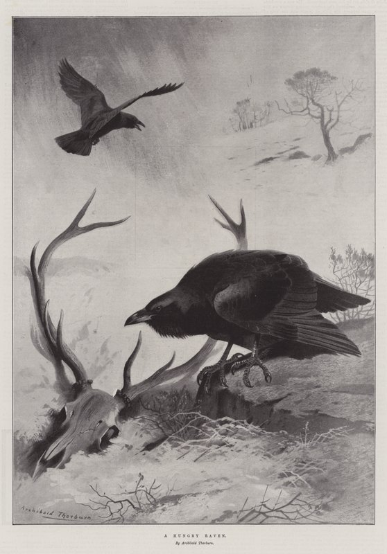 Ein hungriger Rabe(A Hungry Raven )Archibald Thorburn |