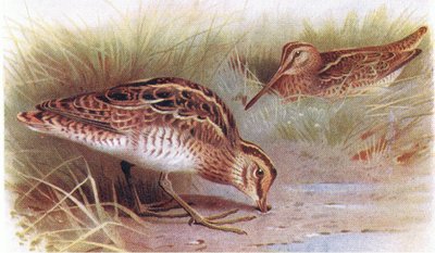 Bekassine, aus Birds of the British Isles and Their Eggs veröffentlicht von Frederick Warne & Co Ltd, 1958(Common Snipe, from Birds of the British Isles and Their Eggs published by Frederick Warne & Co Ltd, 1958 )Archibald Thorburn |