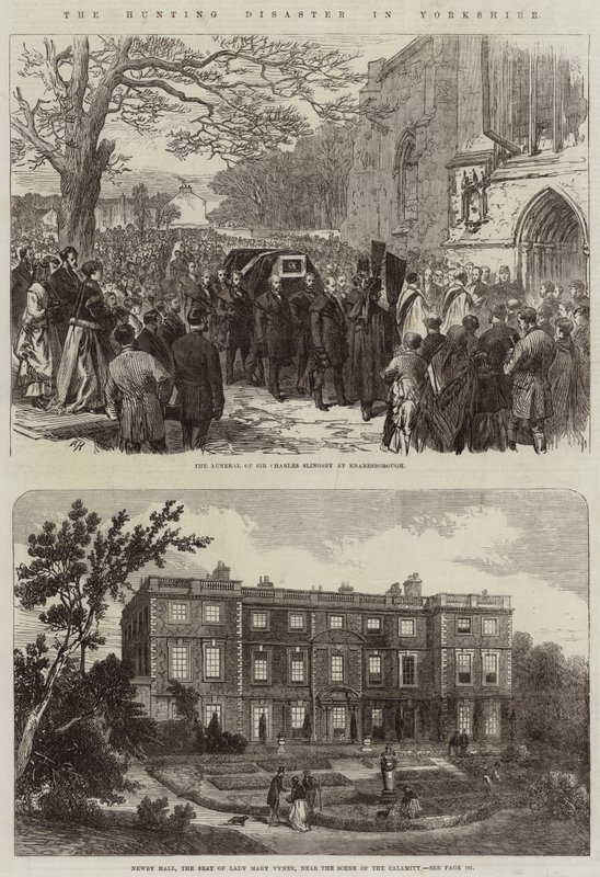 jagdkatastrophe · yorkshire · beerdigung · sir charles slingsby · knaresborough · newby hall · sitz · lady mary vyner · szene · unglück · begräbnisse · zeremoniell · historische häuser · die architektur · Private Collection / Bridgeman Images · / Look and Learn |