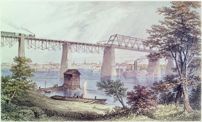 eisenbahnbrücke · dampfzug · ohio river · kentucky · stadt · amerikaner · paddelboot · raddampfer · dampfschiff · lastkahn · boot · tiefer süden · Eisenbahn · Private Collection / Bridgeman Images