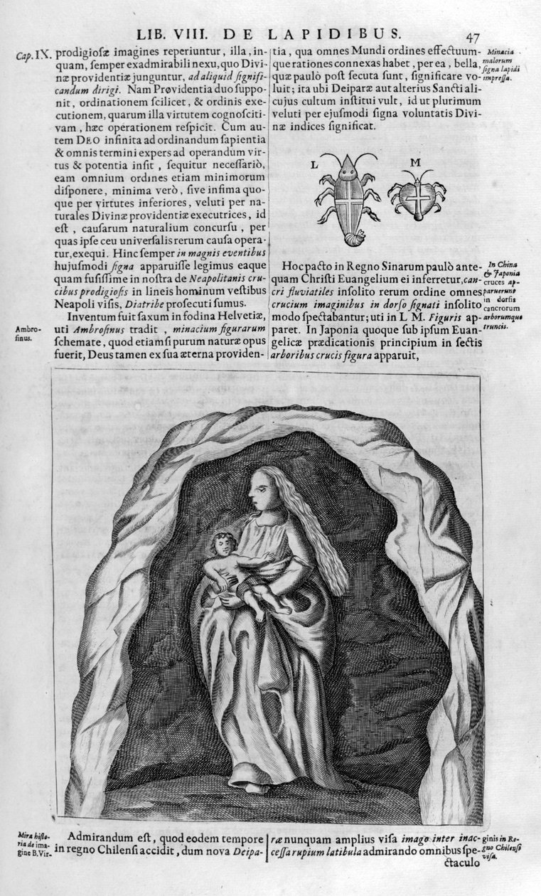 deutschland · stehen · frau · holding · frauen · frau · leute · fromm · deutsch · höhle · baby · babys · land · religion · geographie · christentum · höhlen · text · abbildung · position · jahrhundert · biblisch · dame · einfarbig · 17. jahrhundert · stich · schwarzes u. weiß · schwarzes und weiß · jungfrau und kind · art media · mundus subterraneus · engraving · athanasius kircher · kirchner athanasius · athanasius kirchner · jean claude carriere · carriere · jean claude · kircher · athanasius · Art Media/Heritage Images |