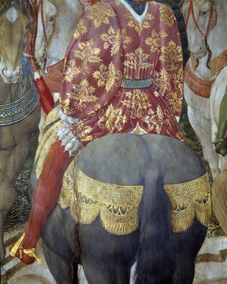 Ritter zu Pferd in prächtigen Gewändern (Detail)(Knight on horseback in sumptuos attracts, detail from the Adoration of the Magi (Fresco)Benozzo di Lese di Sandro Gozzoli |