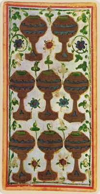 minor arcana · 15. jh. · tarock · tarocchi · karten · spiel · weissagung · deck · tarot · kartenspiel · vorhersage · hellsehen · wahrsagen · wahrsagen · wahrsagen · kartenkünstler · kartenleser · magie · okkultismus · symbolismus · symbolik · orakel · aberglaube · omen · anzug · blattgold · tasse · becher · kelch · trionfi-deck · triumph · trumpf · spielen · spielen · zeitvertreib · erinnerung · tradition · nostalgie · streben · blumen · blätter · ornament · ornamente · dekoration · symbole · mittelalter · renaissance · Private Collection / Bridgeman Images
