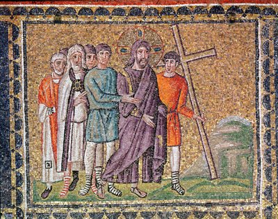 Das Tragen des Kreuzes. Christus, Soldaten und Hohepriester auf dem Weg nach Golgatha(The carrying of the Cross. Christ, soldiers and high Priests on the way to Golgatha, 6th century (mosaic))Byzantine School |