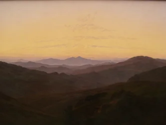 deutschland · deutsch · deutsch · geermany · deutsch deutsch deutsch deutsch deutsch · deutschland deutsch · europa · europäisch · kunst · kunst · kunstwerke · friedrich caspar david (1774-1840) · caspar david friedrich · maler · künstler · künstler · landschaft · malerei des 19. jahrhunderts · kunst · gemaltes bild · idyllisch · kunstmalerei · zeitgenosse · romantik · 19.jahrhundert · befindlichkeiten · sonnenlicht · ruhe · landschaft · im freien · berg · himmel · keine menschen · literarische und künstlerische strömungen und bewegungen · morgendämmerung · deutsche kultur · europa · illustration und malerei · malerei · horizontal · romantik (ende 18.-1. hälfte 19.) · / Bridgeman Images