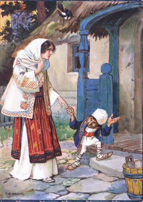 Kleiner Bruder Bit brachte seine schöne Braut in das Haus, das er für sie gebaut hatte("Little Brother Bit took his lovely bride to the house which he had built for her" (colour litho))Charles Edmund (after) Brock |