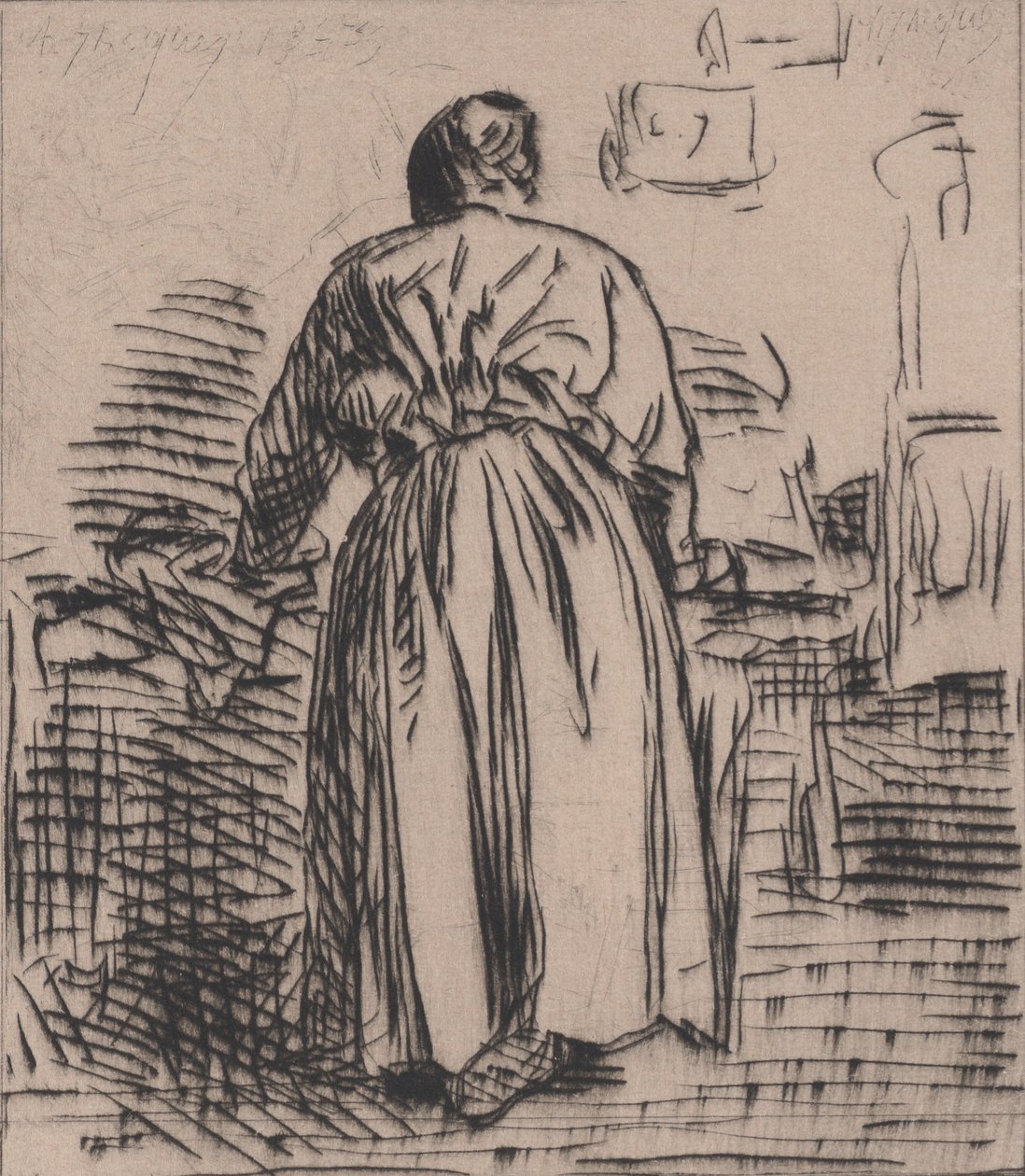 frau · frauen · frau · leute · arbeit · land · französisch · frankreich · museum · position · jahrhundert · hausarbeit · bügeln · konzept · volle länge · in voller länge · getroffen · metropolitanmuseum der kunst · das metropolitanmuseum der kunst · 19. jahrhundert · schwarzes u. weiß · schwarzes und weiß · 19.jahrhundert · drypoint · charles emile jacque · jacque · charles emile · heritage art · charles jacque · jacque · charles · Heritage Art/Heritage Images |