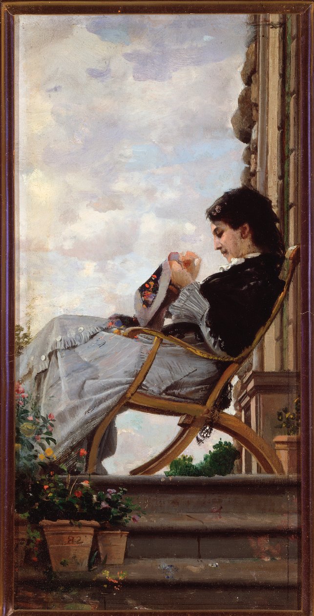 Frau näht auf der Terrasse(Woman sewing on the terrace)Cristiano Banti |