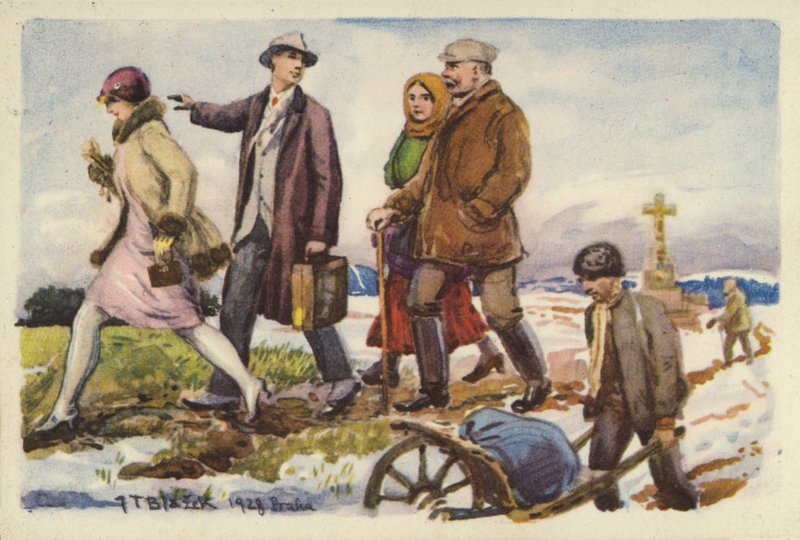 tschechoslowakisch · menschen · gehen · schnee · winter · 1920er jahre · Private Collection / Bridgeman Images · / Look and Learn |