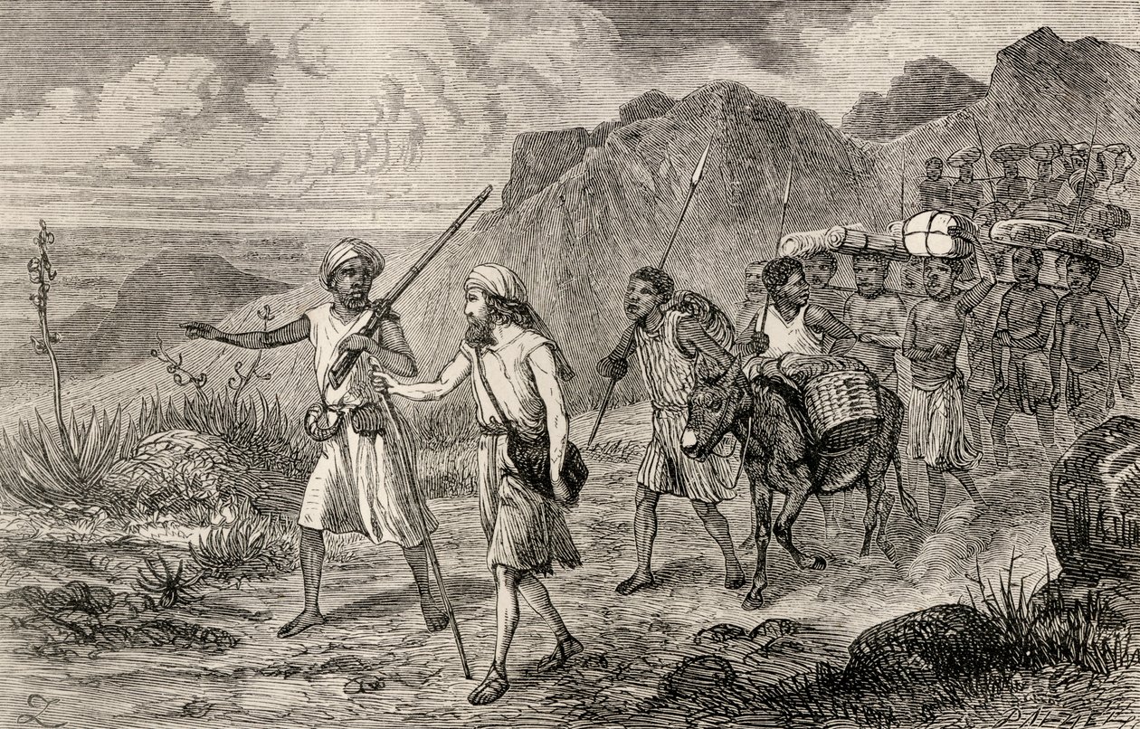 afrikanisch · landschaft · trek · trekking · berge · bergig · esel · esel · reise · erkundung · gewehr · pistole · einheimisch · einheimisch · einheimisch · beschwerlich · arbeit · wohnwagen · wanderweg · Private Collection / Bridgeman Images |