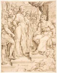 Joseph deutet die Träume des Butlers und des Bäckers(Joseph interpreting the dreams of the butler and the baker)Dirck Volckertsz. Coornhert,Maarten van Heemskerck(after model by) |