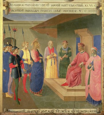 Christus vor Kaiphas (Detail)(Christ before Caiaphas, detail from Episodes from Christ's Passion and Resurrection, reverse surface of Maesta' of Duccio Altarpiece in Cathedral of Siena, by Duccio di Buoninsegna (ca 1255 - pre-1319), tempera on panel)Duccio di Buoninsegna |