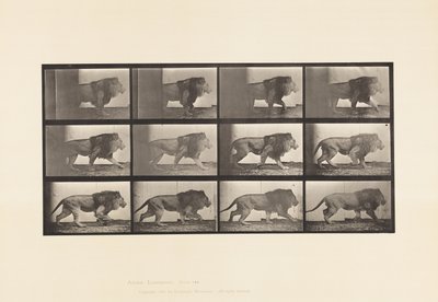 Platte 728. Löwin; Gehen; Löwe; Liegen(Plate 728. Lioness; Walking; Lion; Lying Down)Eadweard Muybridge |