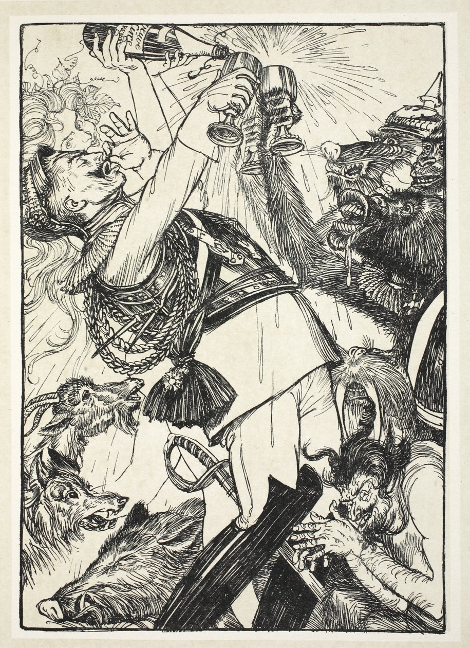 Der Wein der Circe und der Preußische Komus, Illustration aus The Kaiser's Garland von Edmund J. Sullivan, veröffentlicht 1916(The wine of Circe and the Prussian Comus, illustration from The Kaiser's Garland by Edmund J. Sullivan, pub. 1916 )Edmund Joseph Sullivan |