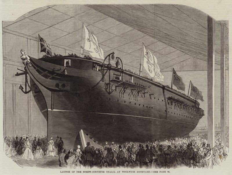Stapellauf der Schraubenkorvette Thalia in der Werft von Woolwich(Launch of the Screw-Corvette Thalia at Woolwich Dockyard )Edwin Weedon |