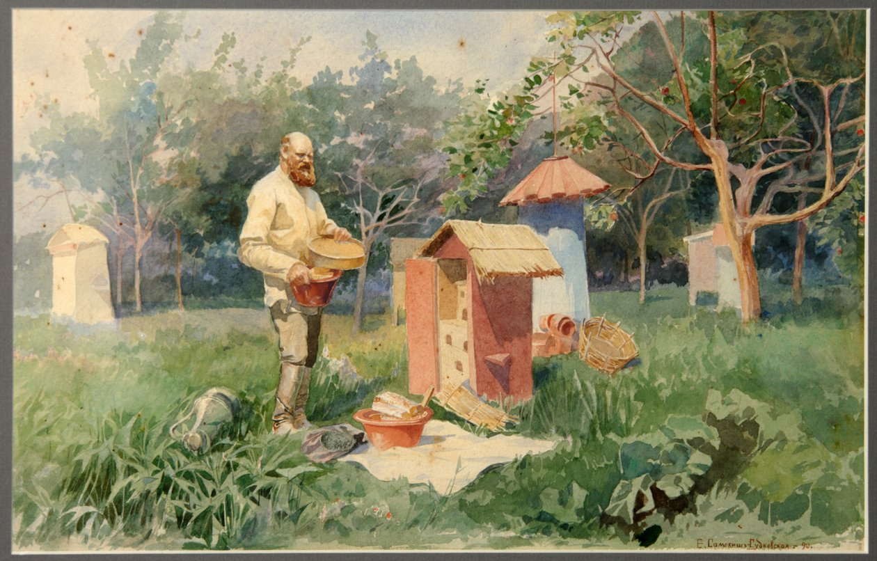 Im Bienenhof(At the bee yard, 1890)Elena Petrovna Samokish-Sudkovskaya |