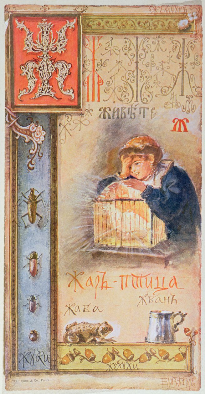 Buchstabe 'J', Illustration aus einem kyrillischen Alphabet, Ende des 19. Jahrhunderts(Letter 'J', illustration from a Cyrillic Alphabet, end nineteenth century )Elisabeth Bem |