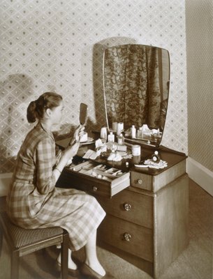 Frau an ihrem Schminktisch, ca. 1955(Woman at her dressing table, c1955. )English Photographer |