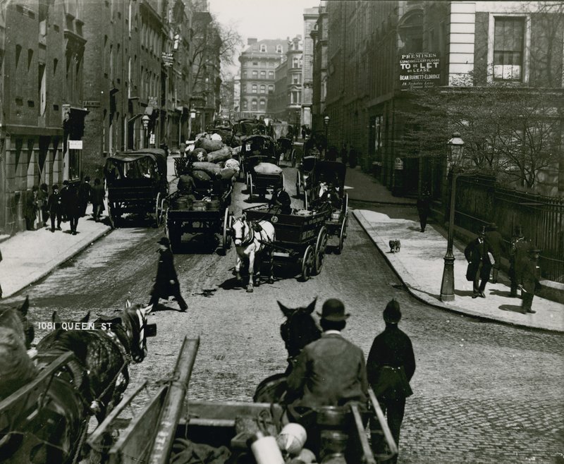 queen street · london · fotografieren · die architektur · gebäude · pferd · wagen · lampe · Private Collection / Bridgeman Images · / Look and Learn |