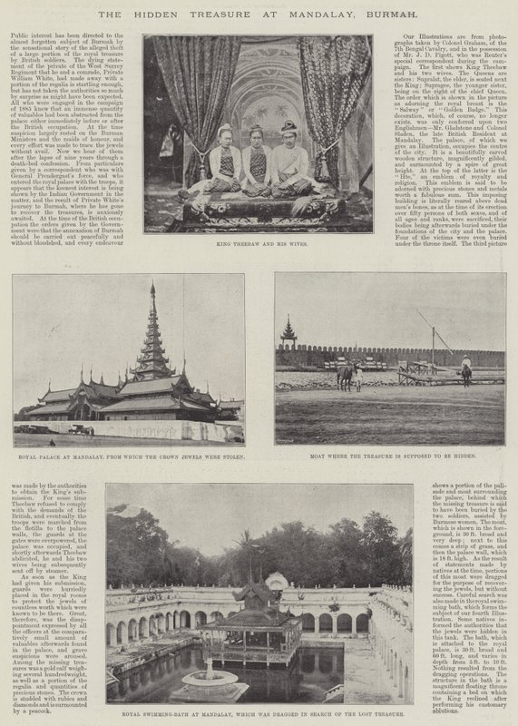 versteckter schatz · mandalay · birma · könig theebaw · ehefrauen · königlicher palast · kronjuwelen · gestohlen · graben · schatz · versteckt · königliches bad · geschleppt · suche · verlorener schatz · birma · die architektur · königtum · diebstahl · Private Collection / Bridgeman Images · / Look and Learn |