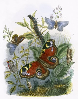 das schmetterlings-vivarium · schmetterlinge · raupen · insekten · natur · blumen · entomologie · wasser · puppen · puppen · flügel · schmetterlinge · sphinx ligustri · motten · käfer · eier · metamopfer · Private Collection / Bridgeman Images · / Look and Learn