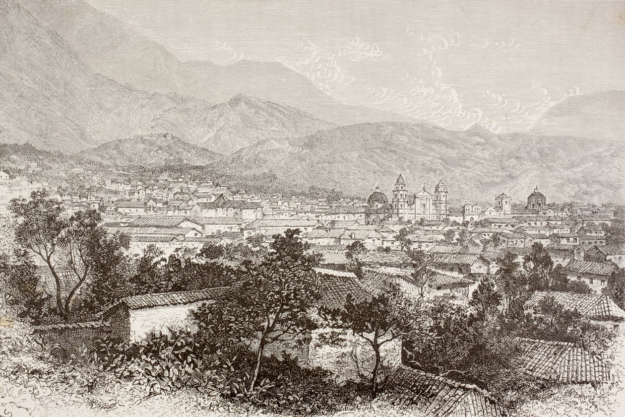 stadtbild · stadtansichten · ansicht einer stadt · stadtübersicht · stadtszene · stadtansicht · stadtbild · städtische ansicht · städtisch · stadt · zeichnung · kolumbien · bergig · lateinamerikanisch · kolumbianisch · kolumbianisch · berge · südamerikanisch · amerika · dächer · tal · gravur · mzengraving · Private Collection / Bridgeman Images |