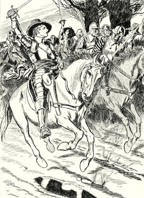 Cromwell führt seine Ironsides in die Schlacht(Cromwell leads his ironsides to Battle (litho))English School |