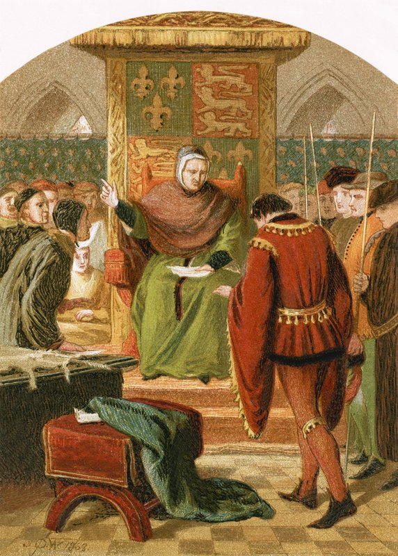 moral · christliche werte · ethik · sentimentalität · prinz henry · zukünftiger könig henry v. · richter gascoigne · sir william gascoigne · gerechtigkeit · oberster richter · legale legende · Private Collection / Bridgeman Images · / Look and Learn |