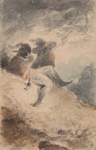Gebirgige Landschaft mit Figur am See (Ein Mann sitzt am See inmitten von Bergen), zuvor J.M.W. Turner (1775-1851) und auch Peter de Wint (1784-1849) zugeschrieben, 1825-30(Mountainous Landscape with Figure by a Lake (A Man seated by a Lake amidst Mountains), previously attributed to J.M.W. Turner (1775-1851) and also attributed to Peter de Wint (1784-1849), 1825-30 (oil)English School |
