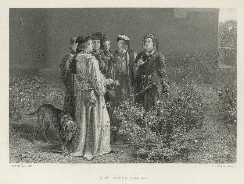 männer · menschen · hunde · roben · rivalen rosen · kriege · rosen · bürgerlich · krieg · garten · Private Collection / Bridgeman Images · / Look and Learn |