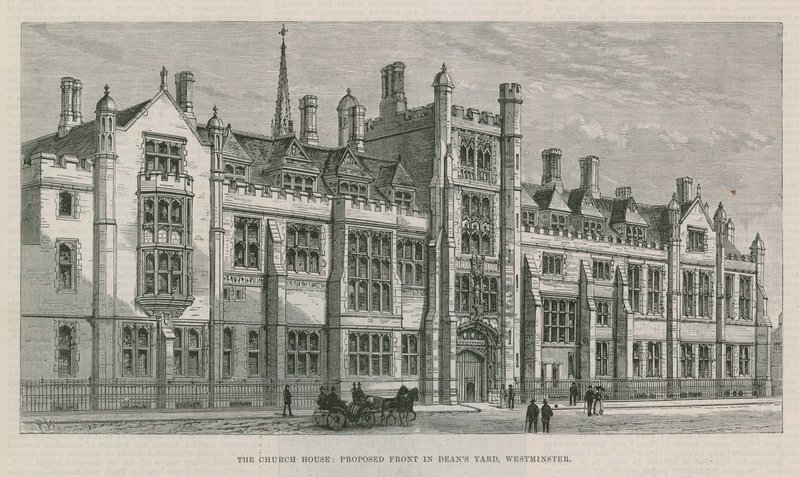 westminster · von pferden gezogen · transport · die architektur · menschen · straßenszenen · dean' · s yard · haus der kirche · Private Collection / Bridgeman Images · / Look and Learn |