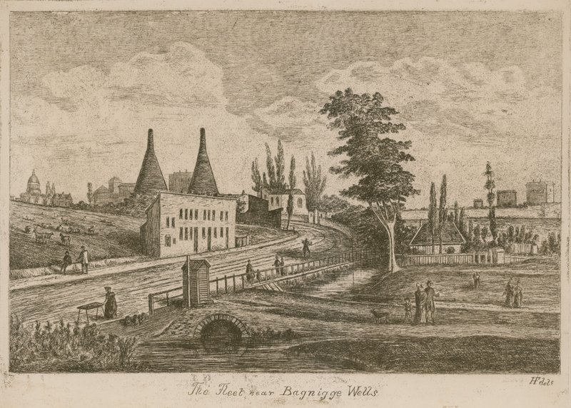 flotte · bagnigge wells · fleet ditch · fleet river · landschaft · bäume · gebäude · die architektur · Private Collection / Bridgeman Images · / Look and Learn |