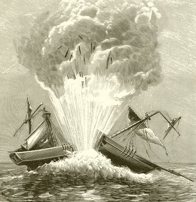 torpedo · robert foulton · herr pitt · bucht von walmer · dänisch · brigg · dorothe · militär · waffen · waffen · zerstörung · torpedos · torpedos · meer · Private Collection / Bridgeman Images · / Look and Learn