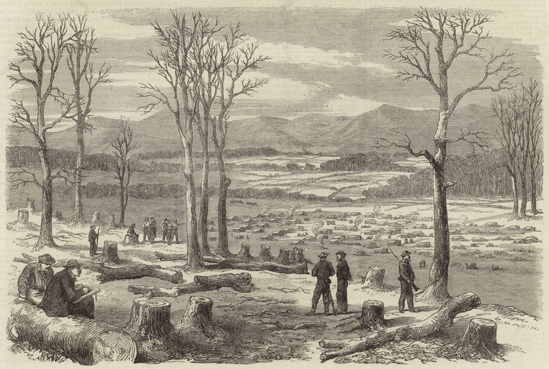 der krieg · amerika · amerikanischer bürgerkrieg · konföderierte armee · menschen · soldaten · männer · bäume · bürgerkriege · vereinigte staaten von amerika · militär · rapidan river · flüsse · virginia · Private Collection / Bridgeman Images · / Look and Learn |