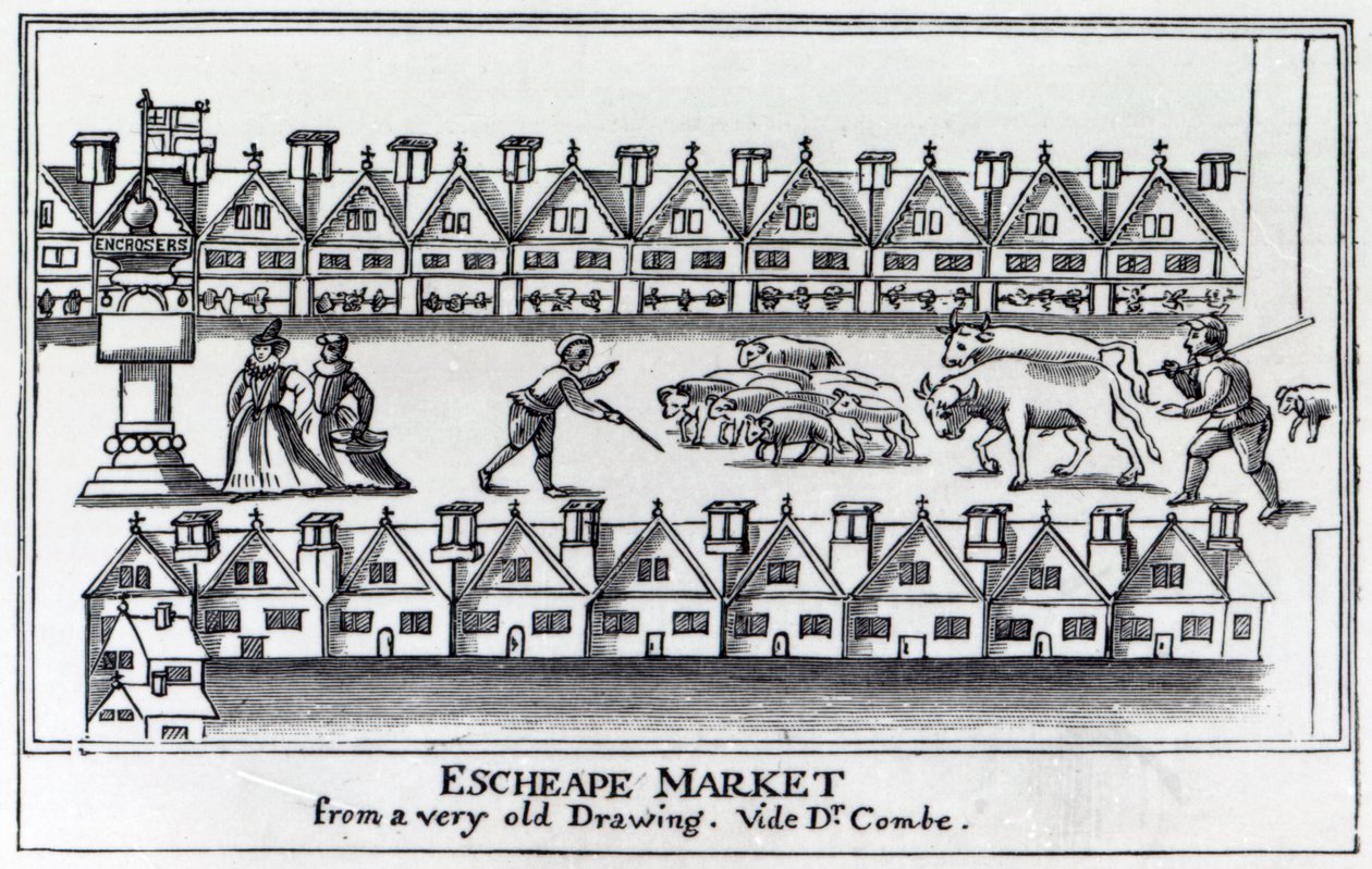 Escheape Market, nach einer Originalzeichnung von ca. 1598(Escheape Market, after an original drawing from c.1598 )English School |