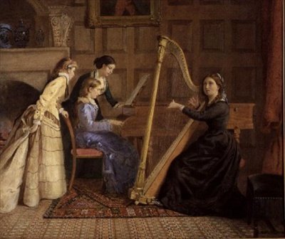 harfe · baby grand piano · kamin · trubel · Private Collection / Bridgeman Images |