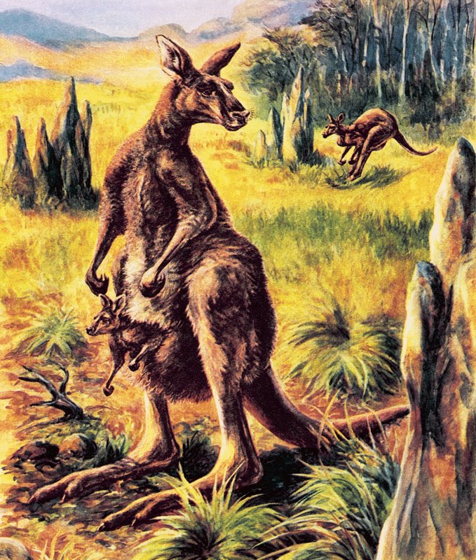 känguru · captain cook · australien · ureinwohner · beuteltier · joey · Private Collection / Bridgeman Images · / Look and Learn |