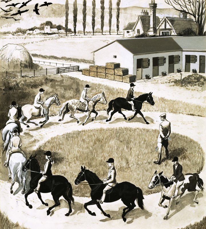 pony · ponys · pferd · bauernhof · landschaft · kreis · bauernhof · schwarz und weiß · einfarbig · Private Collection / Bridgeman Images · / Look and Learn |