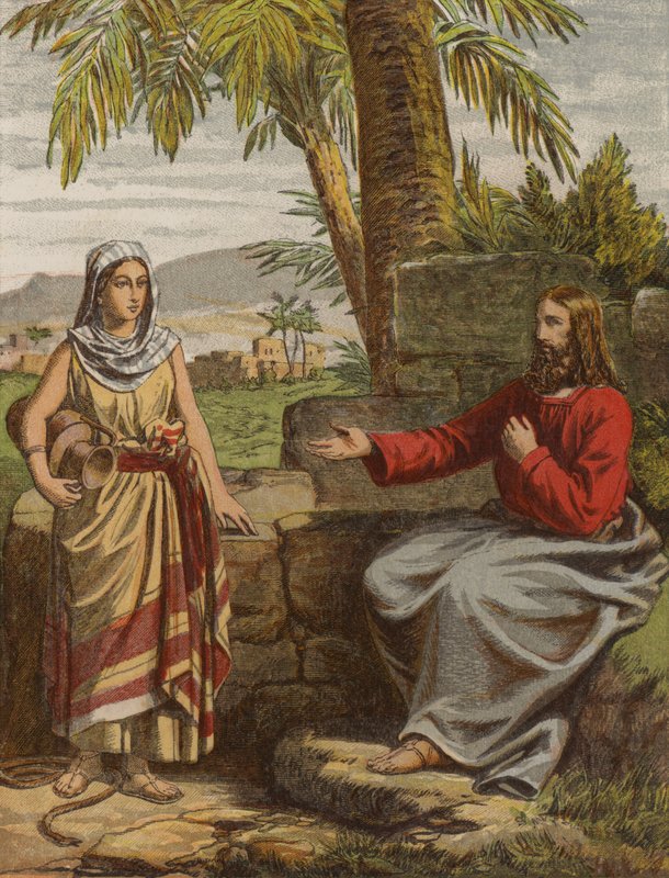 Christus und die Frau von Samaria(Christ and the Woman of Samaria (chromolitho))English School |