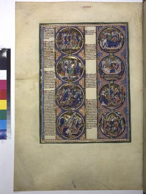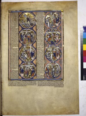 Vollseite: Acht Medaillons mit Miniaturen und begleitendem Text, um 1225-1250(Full page: eight medallions enclosing miniatures and accompanied by explanatory text, c.1225-1250 (tempera on parchment))Erich Lessing |