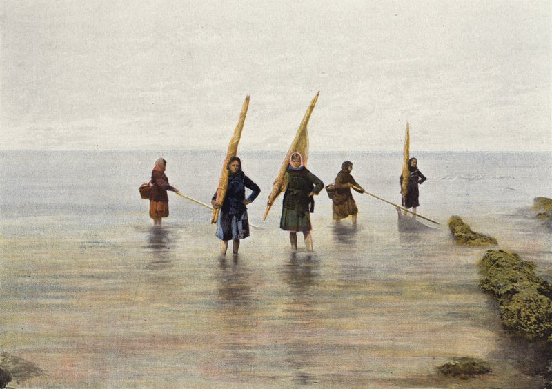 frankreich · französisch · garnelenfischen · garnelen · garnelen · angeln · Meer · Private Collection / Bridgeman Images · / Look and Learn |