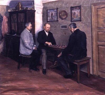 Die Dame-Spieler(Les joueurs de dames (The draughts players). Peinture de Evgeni Iosifovich Bukovetsky (1866-1948). Huile sur toile, 71 x 80 cm)Evgeniy Iosipovich Bukovetsky |