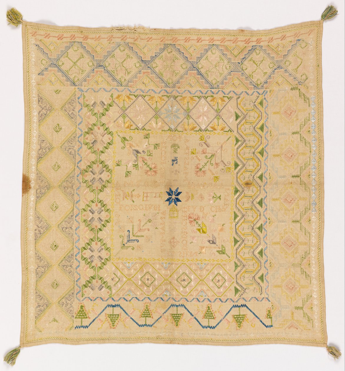 kompliziert · geschenk · tapisserie · kleidung · taschentuch · faden · geschenk · zeit · geschicklichkeit · farben · sampler